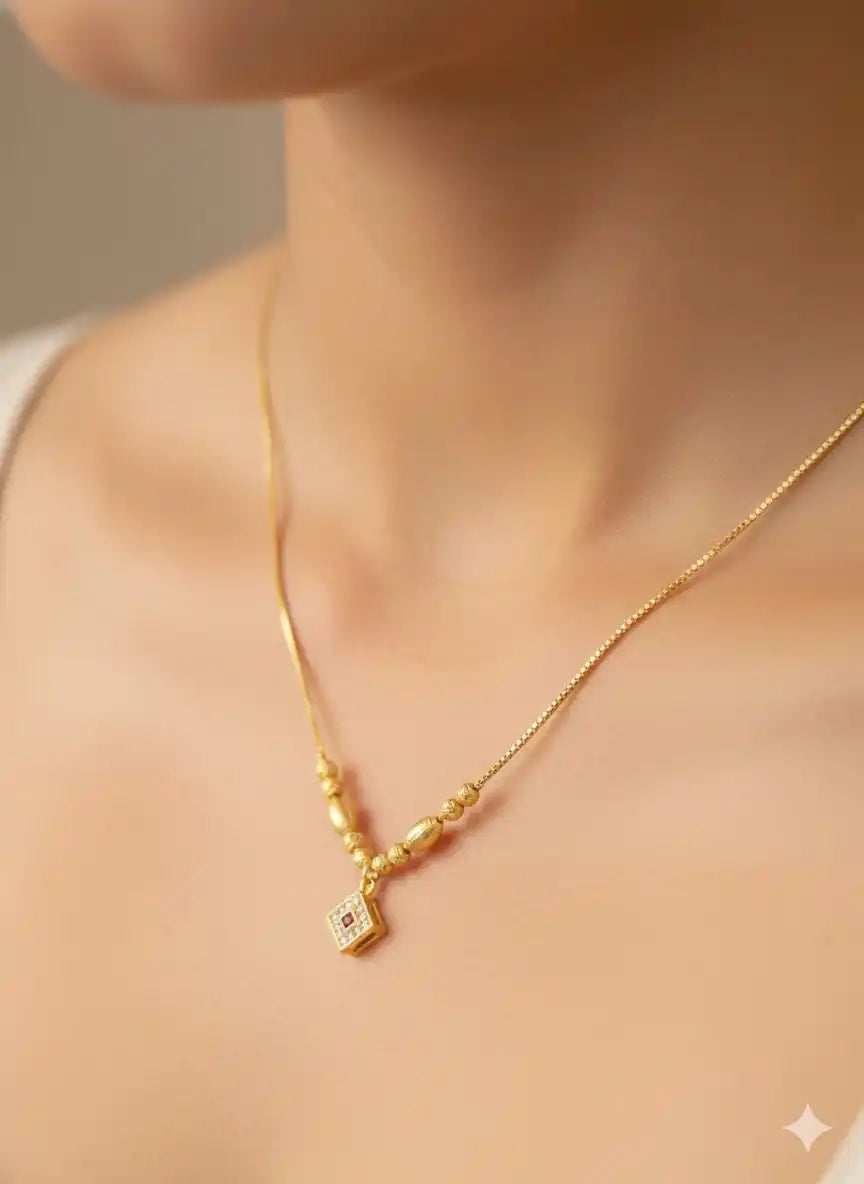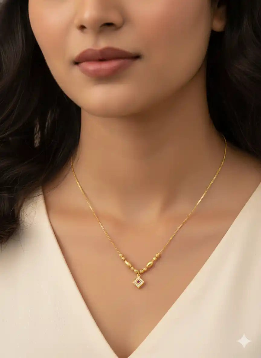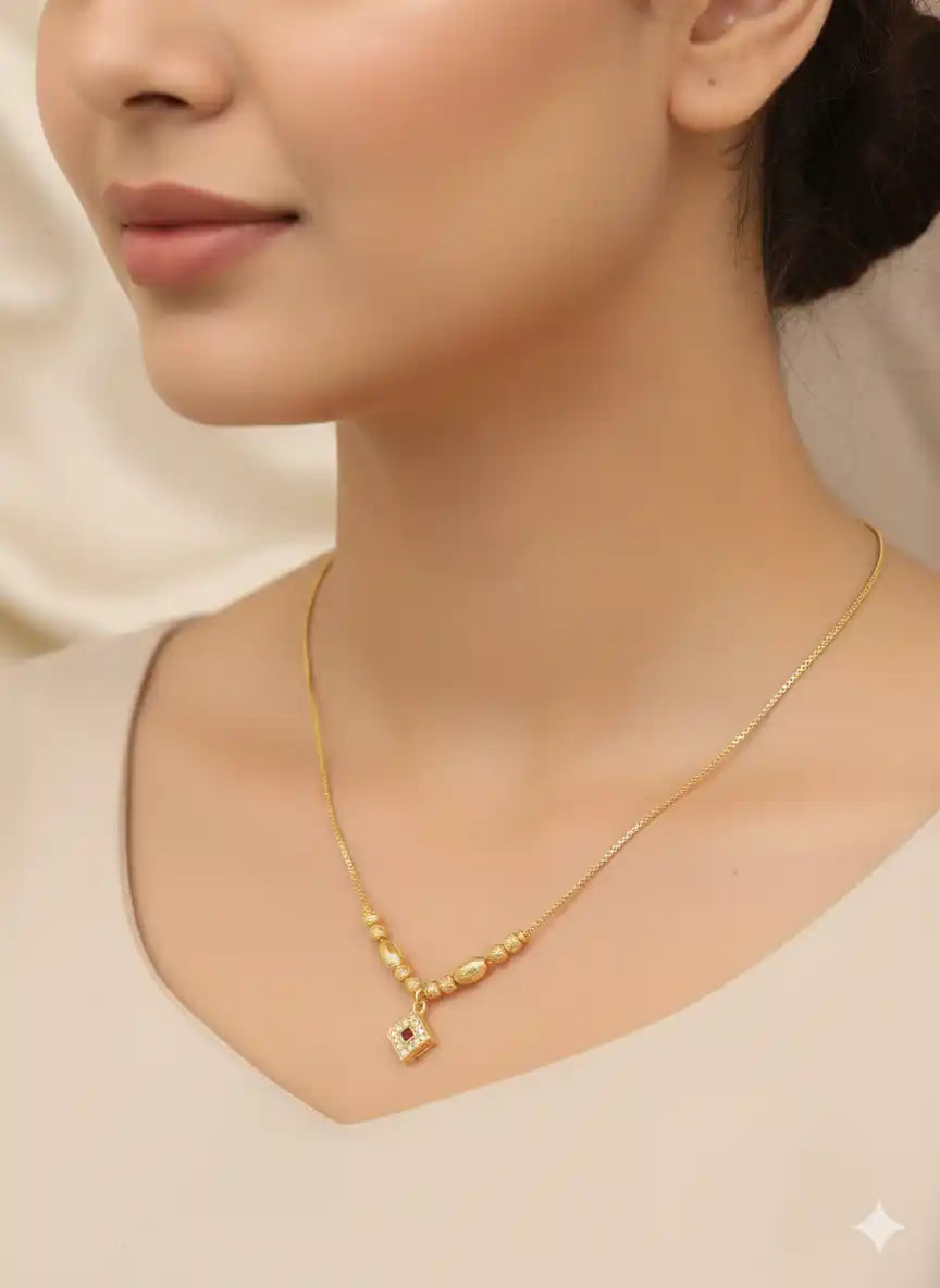 Sparkle through your day with this charming beaded chain, featuring a chic square AD stone pendant that catches every bit of light. Crafted with a delicate micro gold finish, it brings a touch of effortless elegance to any outfit, whether you’re heading to the office or out for brunch. The adjustable design ensures a perfect fit, making it easy to style exactly how you like it. It is the perfect little pick-me-up for your jewellery collection, offering a sophisticated look without the fuss.